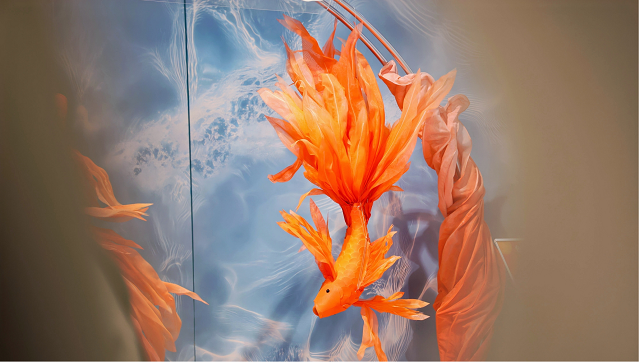 本次主题快闪店将这一诗意故事转化为可感、可触的实体空间。“锦鲤祈愿池”巨型锦鲤装置融合东方诗意与当代视觉美学,以“许愿”与“送福”创意呈现,为观众带来视觉与深度情感的触碰。